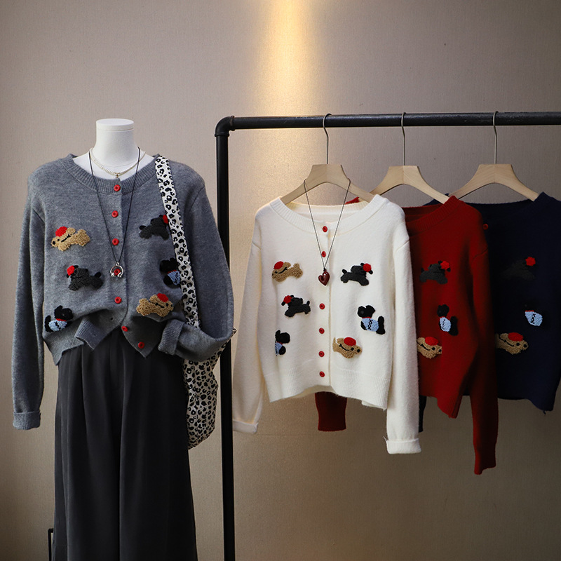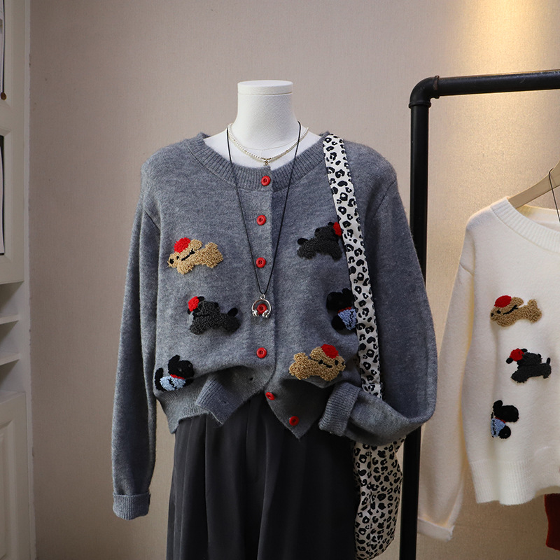Korean Style Women's Round Neck Cartoon Sweater